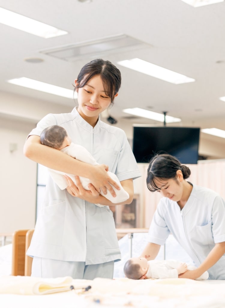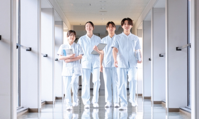 2025年(令和7年)2月に行われました第114回看護師国家試験と第111回保健師国家試験の合格率はともに100%であり、例年の看護師国家試験と保健師国家試験の合格率もほぼ100%です。また、就職率は常に100%であり、卒業生は、病院や企業などの保健医療チームの一員として、患者様や働く方々の疾病の予防、回復、健康の保持増進を支援する看護師・助産師・保健師として臨床や産業保健の現場で活躍しています。