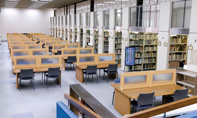 2号館1階にあり、図書・雑誌・視聴覚資料のほか、電子リソースを収集・提供し、研究図書館であるとともに学生の学習図書館として機能しています。情報端末を集中的に設置した「情報ゾーン」や「ラーニングコモンズ」を設置しています。