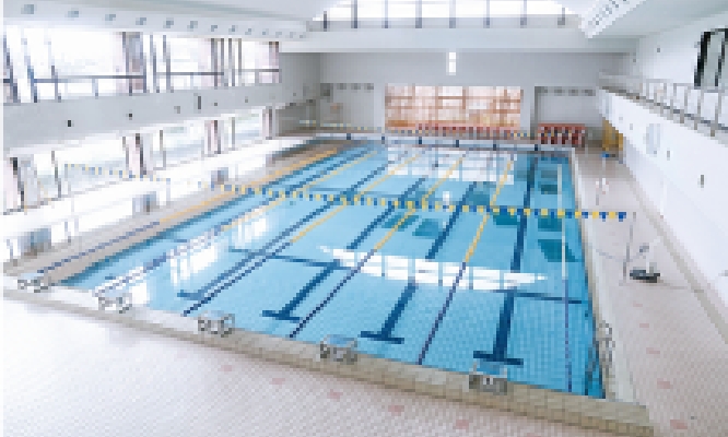 25m温水プール6コースと2階にはスポーツセンター・トレーニングルームがあります。