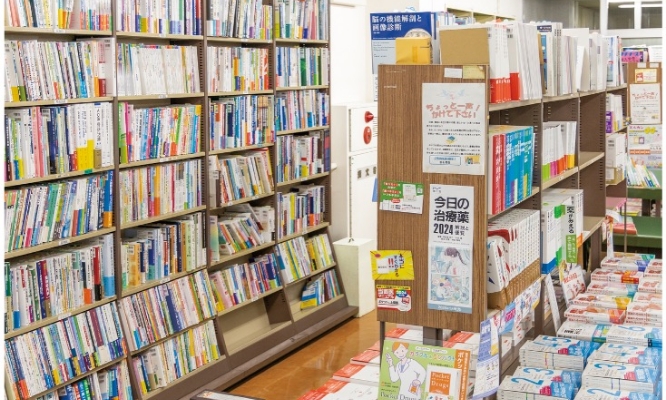 授業で使う教科書は書店で購入できます。学習や国家試験対策に役立つ参考書も揃っています。