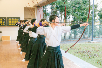 柔剣道場、弓道場として利用されている武道館。活発にサークル活動が行われています。