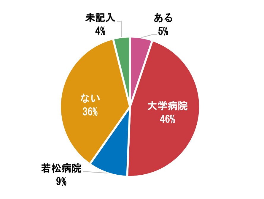 ※「ある」と回答した方は大学病院か若松病院か不明